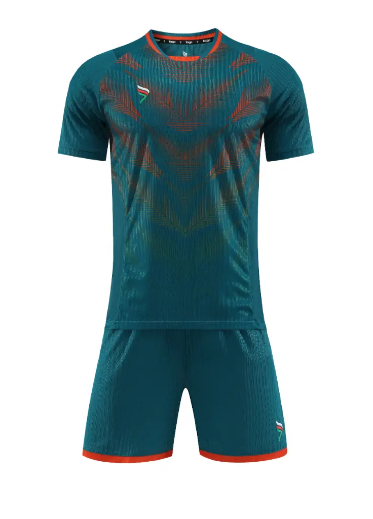 Tago Amouage kit, green football shirt, short sleeve jersey, breathable football kit, Micro-Mesh jersey, Tago sportswear, embroidered football shirt, lightweight soccer jersey, athletic performance wear